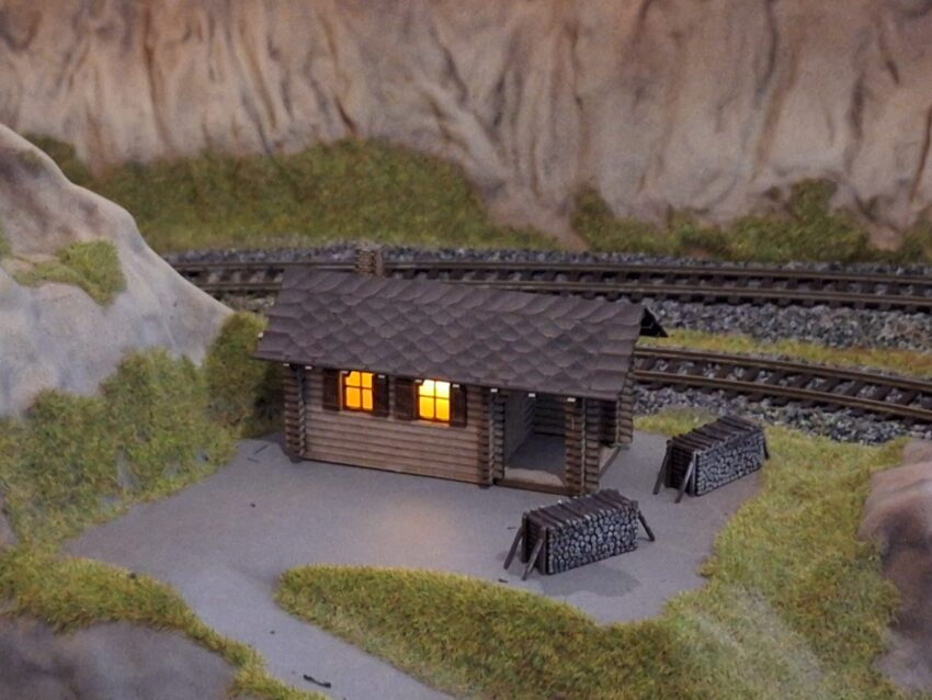 The external loop had a “dirt road” and a tunnel entrance that needed some improvement. After removing the dirt and cleaning, plaster was used to make a more leveled countryside road. Using a knife and an old wagon ensured clearance on the rails. Once the plaster is dry it is painted, ballast added to the…